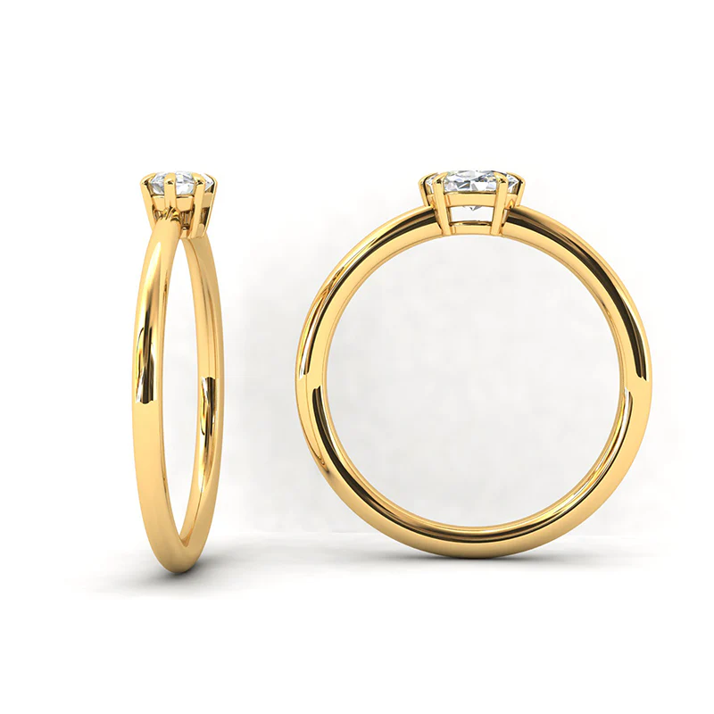 9K Yellow Gold claw set oval diamond solitare ring.*****