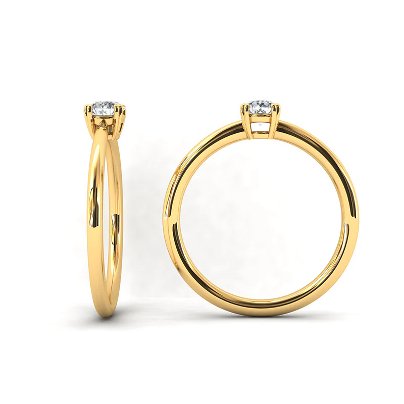 9K Yellow Gold double claw set round brilliant diamond solitare ring.*****