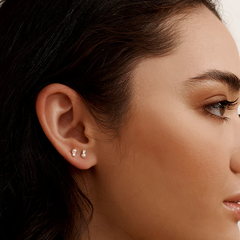 PEARL WITH WHITE TOPAZ STUDS