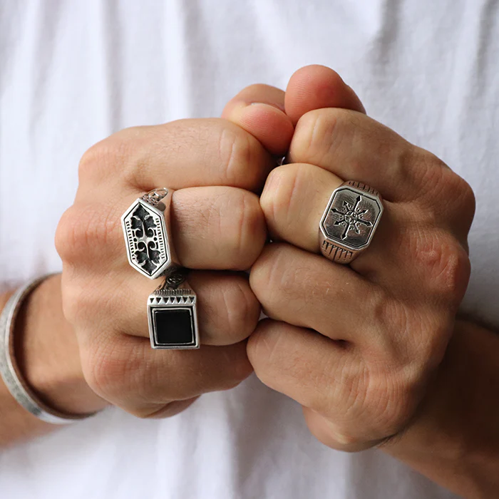Sterling Silver and Onyx Ring with Oxidised Detail.*****
